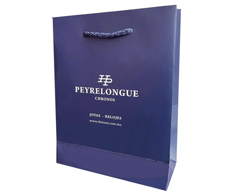 – 100% recyclable stamped bags in different sizes and colors.